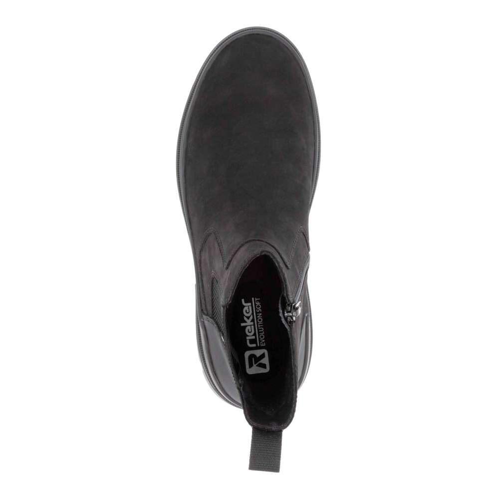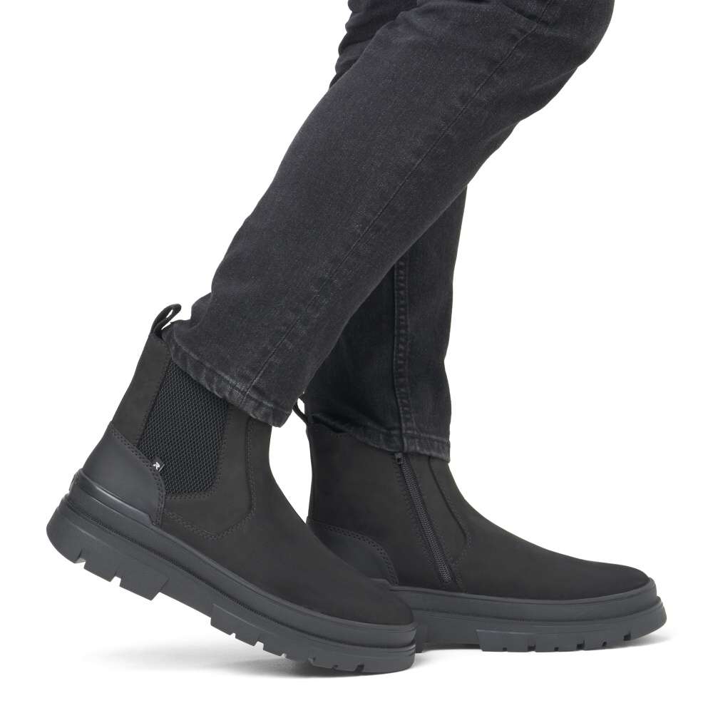 Rieker REVOLUTION je nová řada moderní sportovní obuvi s obrovským důrazem na komfort a pohodlí i při celodenním nošení. Nadčasový kožený kotník pro moderního muže, který preferuje pohodlí ve svém obutí. Černý svršek boty se snadno kombinuje se šatníkem a dodává modelu nadčasový vzhled. Vyšší podešev zajišťuje stabilitu a pohodlí při každém kroku. Pro snadné obutí je boty opatřena zipem z vnitřní strany, zatímco pružná část na vnější straně boty se přizpůsobí tvaru nohy. Pohodlí bude umocněno příjemně měkkou vyjímatelnou stélkou, která zajišťuje optimální pohodlí po celý den. Tyto kotníky jsou ideální volbou pro každodenní nošení, když hledáte kombinaci stylu a dlouhodobého pohodlí. Technologie: RevolutionSoft – unikátní stélka, která změkčuje došlap a přizpůsobí se tvaru Vašeho chodidla. Tato bota je vybavena vyjímatelnou stélkou.
