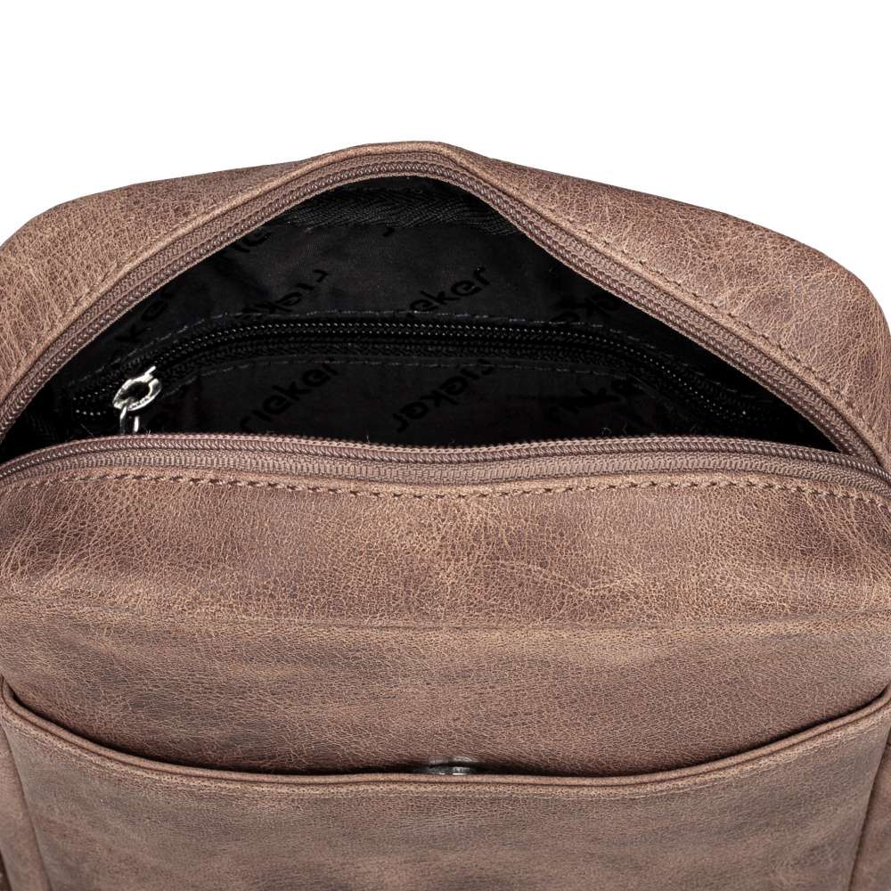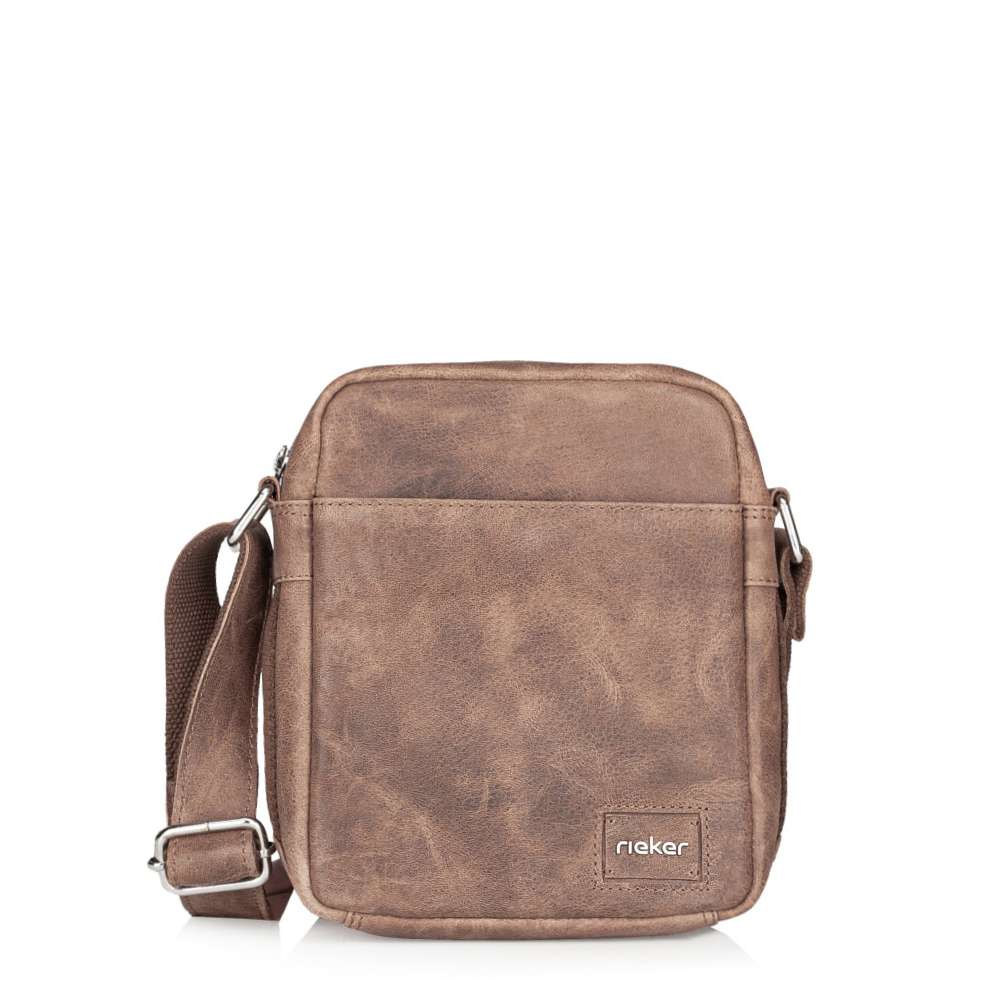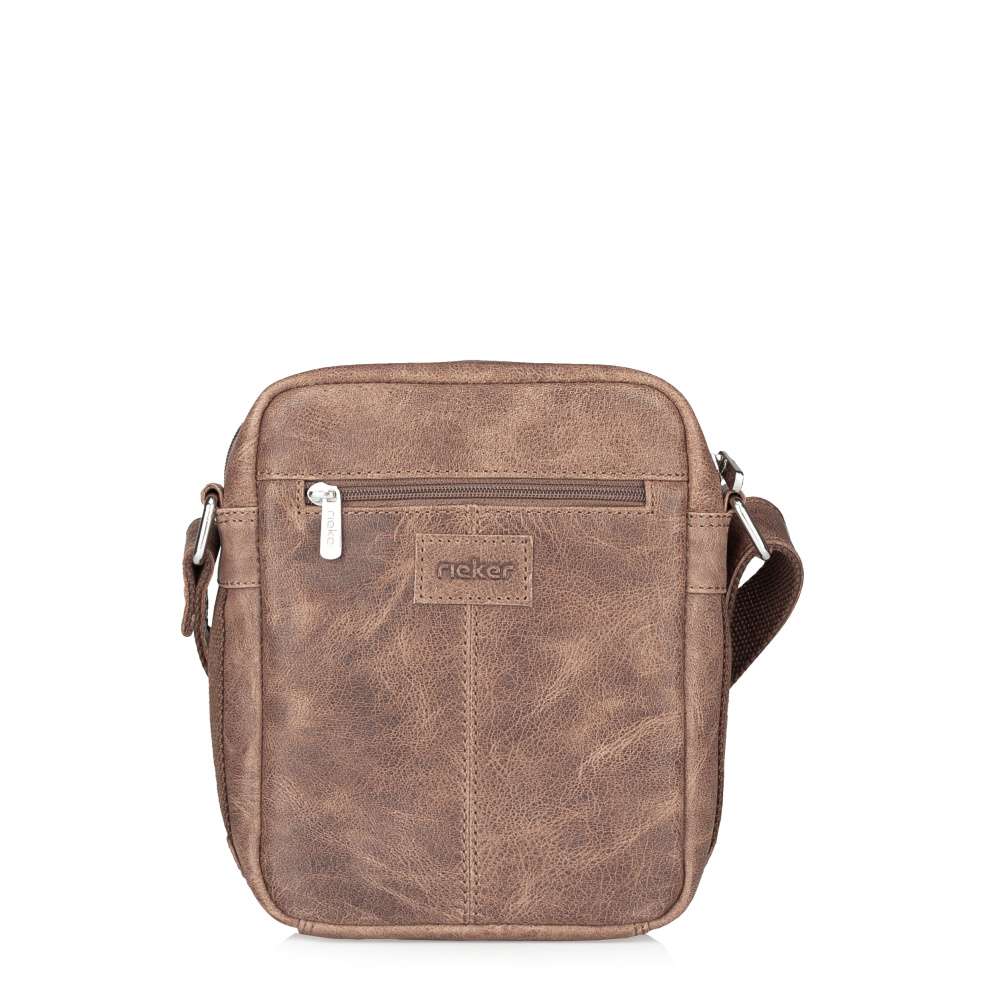 Pánská taška RIEKER v exkluzivním provedení hnědého koženého svršku s dekorativním logem značky je ideálním doplňkem pro moderního muže. Praktické uspořádání úložných prostor zahrnuje přední kapsičku s magnetickým klipem a zadní kapsičku se zipem. Hlavní prostor k uložení věcí uzavírá zip a obsahuje boční kapsičky, které vytvoří prostor k uložení drobností. Taška je vybavena popruhem, který je nastavitelný na požadovanou délku a vytvoření dokonalého pohodlí při nošení. Tento model je ideální volbou pro každodenní nošení, kombinující praktičnost, kvalitu a exkluzivní vzhled. Rozměry: cca V 22,5 cm x Š 19 cm x H 6,5 cm Vnitřní uspořádání: taška není dělená. Taška má délkově nastavitelný popruh, který nelze odepnout. Maximální délka nastavitelného popruhu je cca 130 cm.