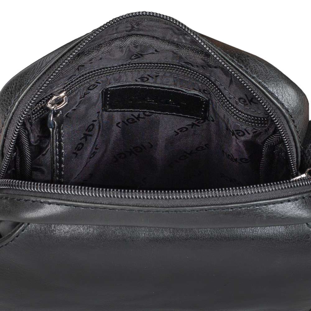 Kožená pánská taška RIEKER v černé barvě je stylovým a praktickým doplňkem pro každodenní nošení. Designové logo značky na přední části dodává tašce originální vzhled a vystihuje prestiž tohoto modelu. Odepnutím magnetického klipu a otevřením předního dílu se Vám otevře kapsička pro uložení věcí snadno dostupných, zatímco hlavní prostor chrání zip a uvnitř naleznete dvě menší přihrádky – jednu se zipem a druhou otevřenou pro rychlý přístup. Zadní část tašky je vybavena další kapsičkou na drobnosti. Tento model je vybaven délkově nastavitelným popruhem, který si přizpůsobíte dle Vašich potřeb pro maximální pohodlí během nošení. S tímto kouskem budete vždy v módním designu a navíc budete mít u sebe vždy vše potřebné. Rozměry cca: V 23 cm x Š 18 cm x H 6 cm Vnitřní uspořádání: taška není dělená Taška má délkově nastavitelný popruh. Maximální délka nastavitelného popruhu cca 155 cm.