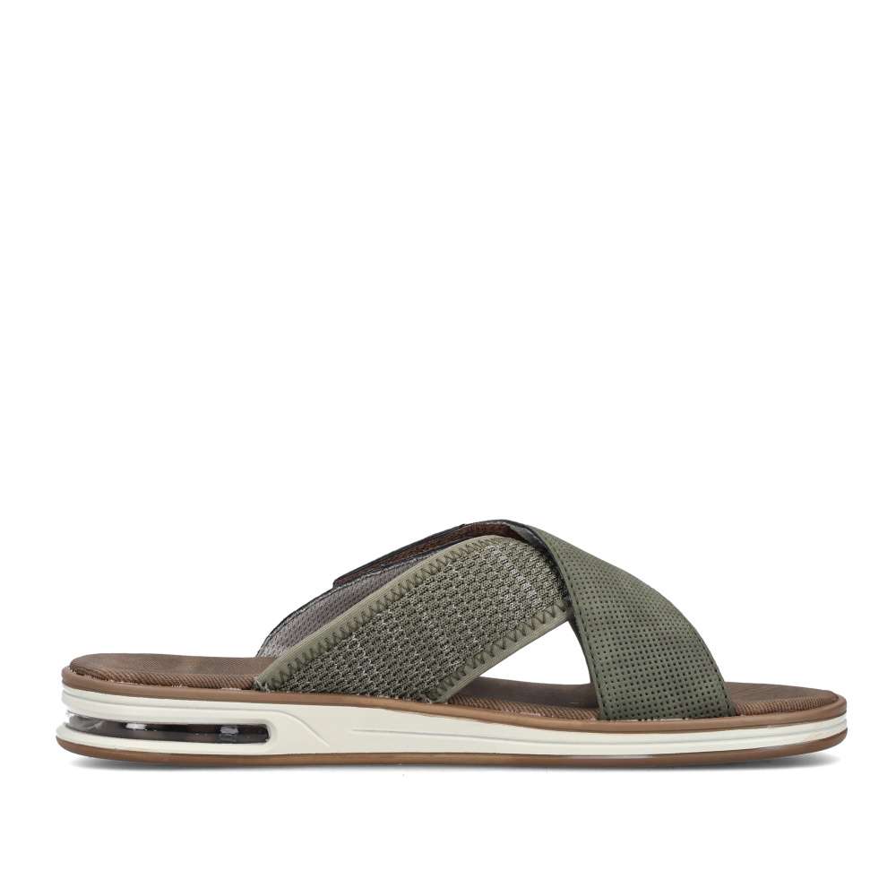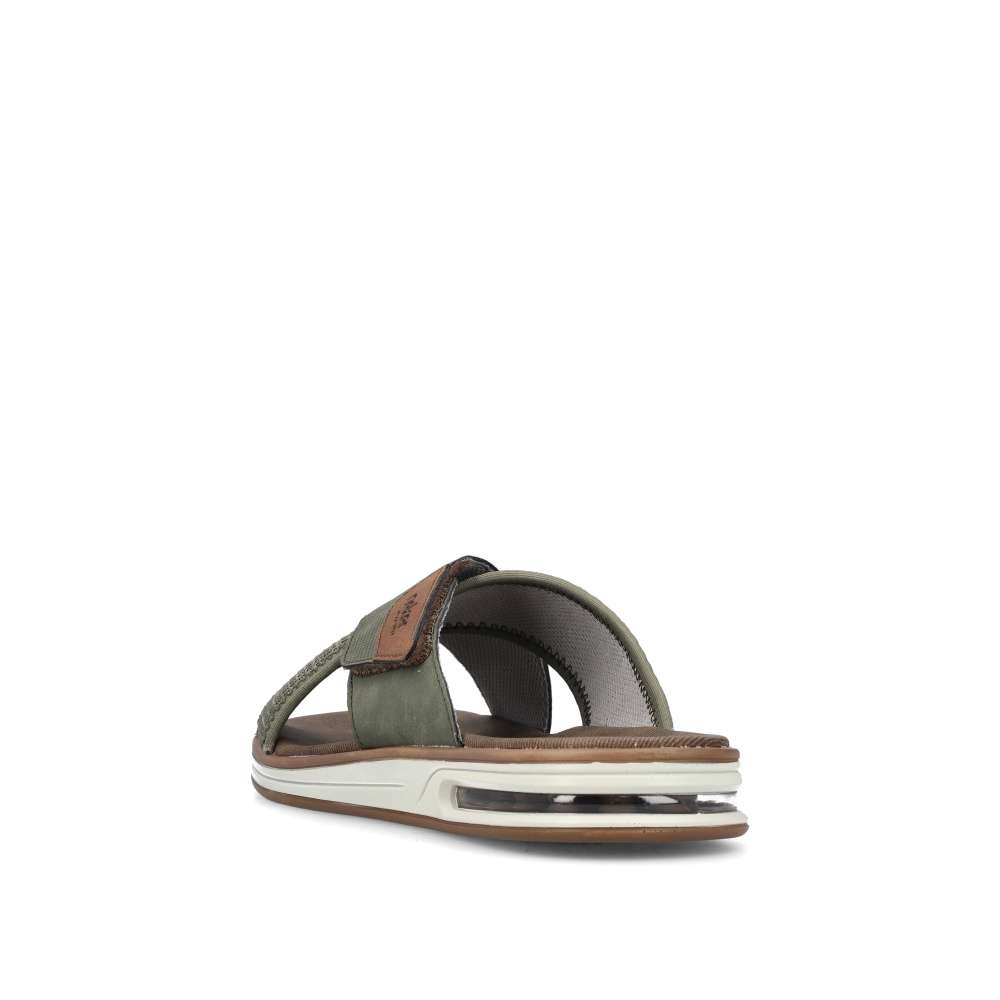 Detailní informace Zažijte letní pohodlí se stylovým vzhledem s pánskými nazouváky značky RIEKER! Zelený svršek se zajímavou kombinací materiálů, kterou dekoruje nášivka s logem značky, je vytvořen dokonalý módní vzhled. Pásek přes nárt je opatřen praktickým suchým zipem, což umožňuje dokonalé přizpůsobení potřebám vaší nohy. Jako příjemný bonus je podešev obohacena technologií tlumící nárazy pro zajištění maximálního komfortu při každém kroku. Vychutnejte si léto ve stylu a pohodlí.
