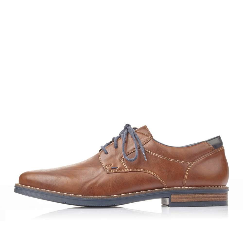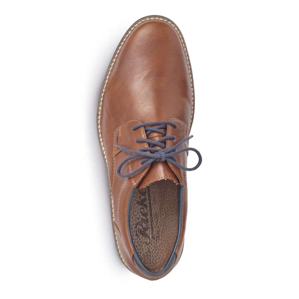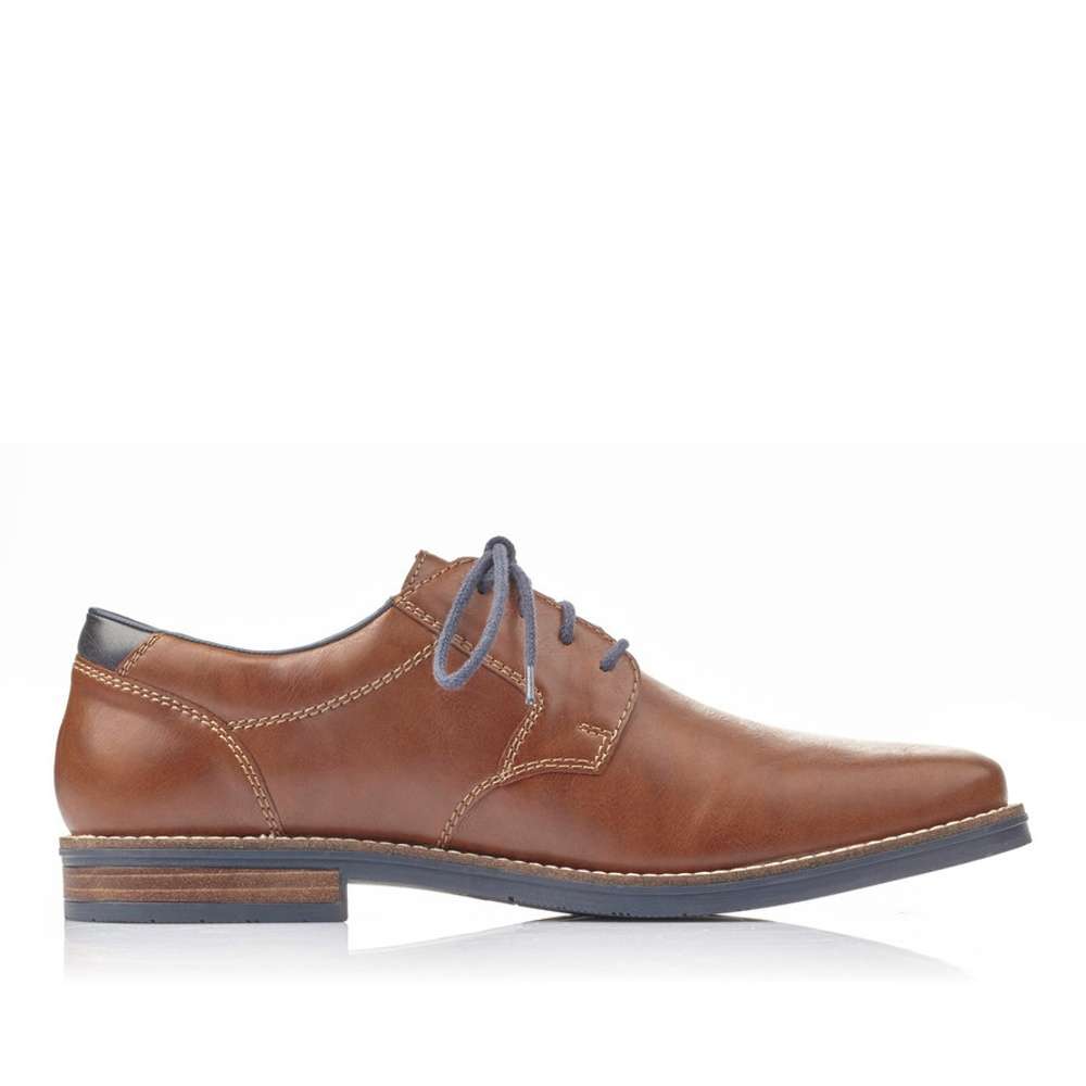 Detailní informace Šněrovací pánské polobotky značky RIEKER, které se díky hladkému svršku hnědé barvy skvěle hodí pro každodenní nošení. Šněrování s kontrastně modrou šňůrkou zajistí dokonalé přizpůsobení se Vašemu chodidlu. Elegantní a zároveň komfortní kousek, který můžeme nosit jak do města, tak kanceláře.