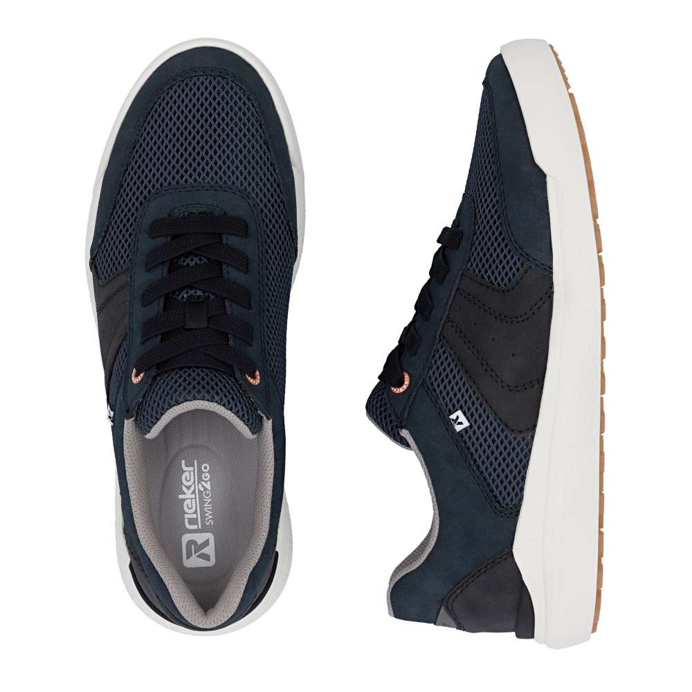 Tyto tenisky RIEKER jsou ideální volbou pro muže, kteří hledají pohodlnou a stylovou obuv vhodnou do města, na procházky i na každodenní volnočasové aktivity – jednoduše boty, na které se můžete spolehnout od rána do večera. Svršek tvoří promyšlená kombinace struktur materiálů, kde prodyšný textil zajišťuje optimální cirkulaci vzduchu. Klasické šněrování umožňuje přesné nastavení obuvi podle tvaru chodidla a zajišťuje stabilitu při každém kroku. Uvnitř se nachází vyjímatelná, měkká stélka, která se přizpůsobí nášlapu, poskytuje potřebnou oporu a zároveň umožňuje snadnou údržbu či výměnu. Lehká a flexibilní podešev je navržena tak, aby účinně tlumila nárazy při chůzi, čímž snižuje zatížení kloubů a zvyšuje komfort i při celodenním pohybu. Dokonalá souhra moderního vzhledu a maximálního pohodlí díky funkčním technologiím, to jsou boty RIEKER Sport. Technologie: Antistress – díky čtyřem antistresovým vlastnostem – lehkosti, pružnosti, prostornosti a vynikající absorpci nárazů – vám boty RIEKER nabídnou komfortnější chůzi. Swing2GO – extra měkká stélka ve tvaru oblouku, která podporuje přirozený tvar chodidla a nabízí efektivní tlumení nárazů. Tato bota je vybavena vyjímatelnou stélkou.